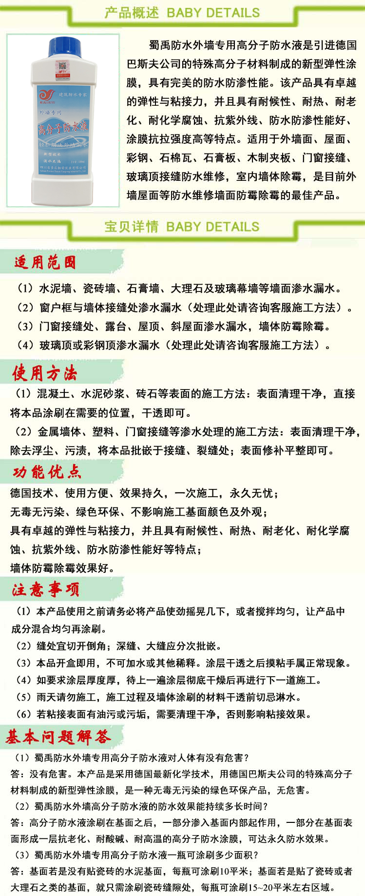 蜀禹防水外墻專用高分子防水液購買鏈接   點擊此處購買