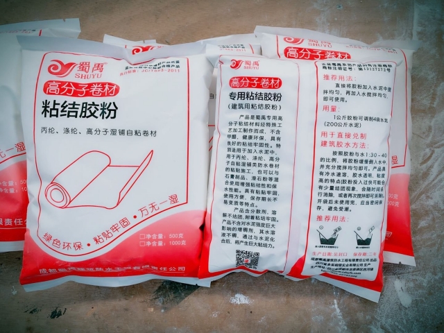 產品是蜀禹專用高分子粘結材料經特殊工藝加工制作而成,不含甲醛,健康環保,具有良好的粘結牢固性。特別適用于加入水泥中,用于丙綸、滌綸、高分子自粘濕鋪類防水卷材的粘貼施工,也可以與石膏制品、滑石粉等混合使用增強粘結性和保水性能。具有粘貼牢固,使用方便,保存期長不易變質等特點。