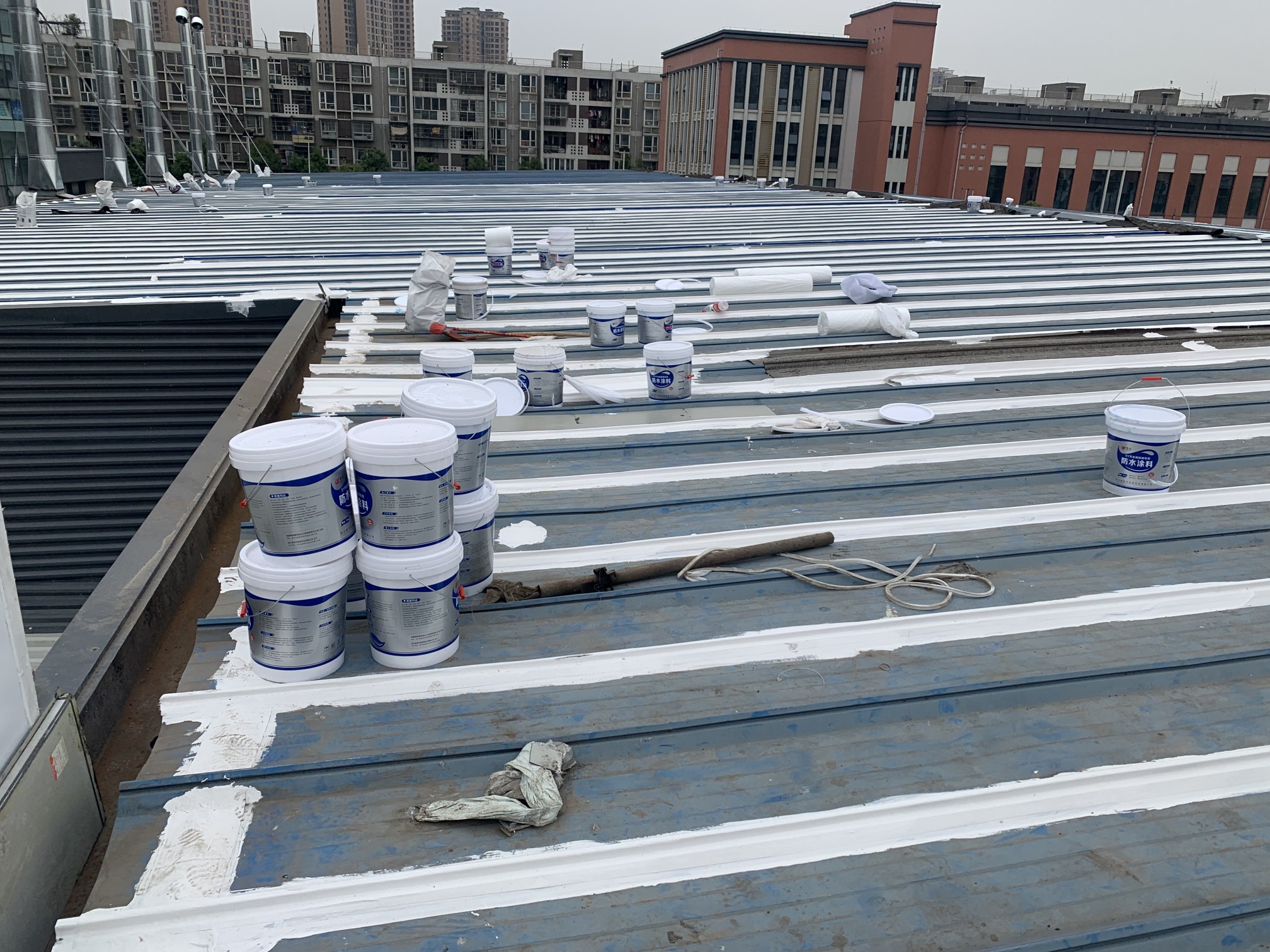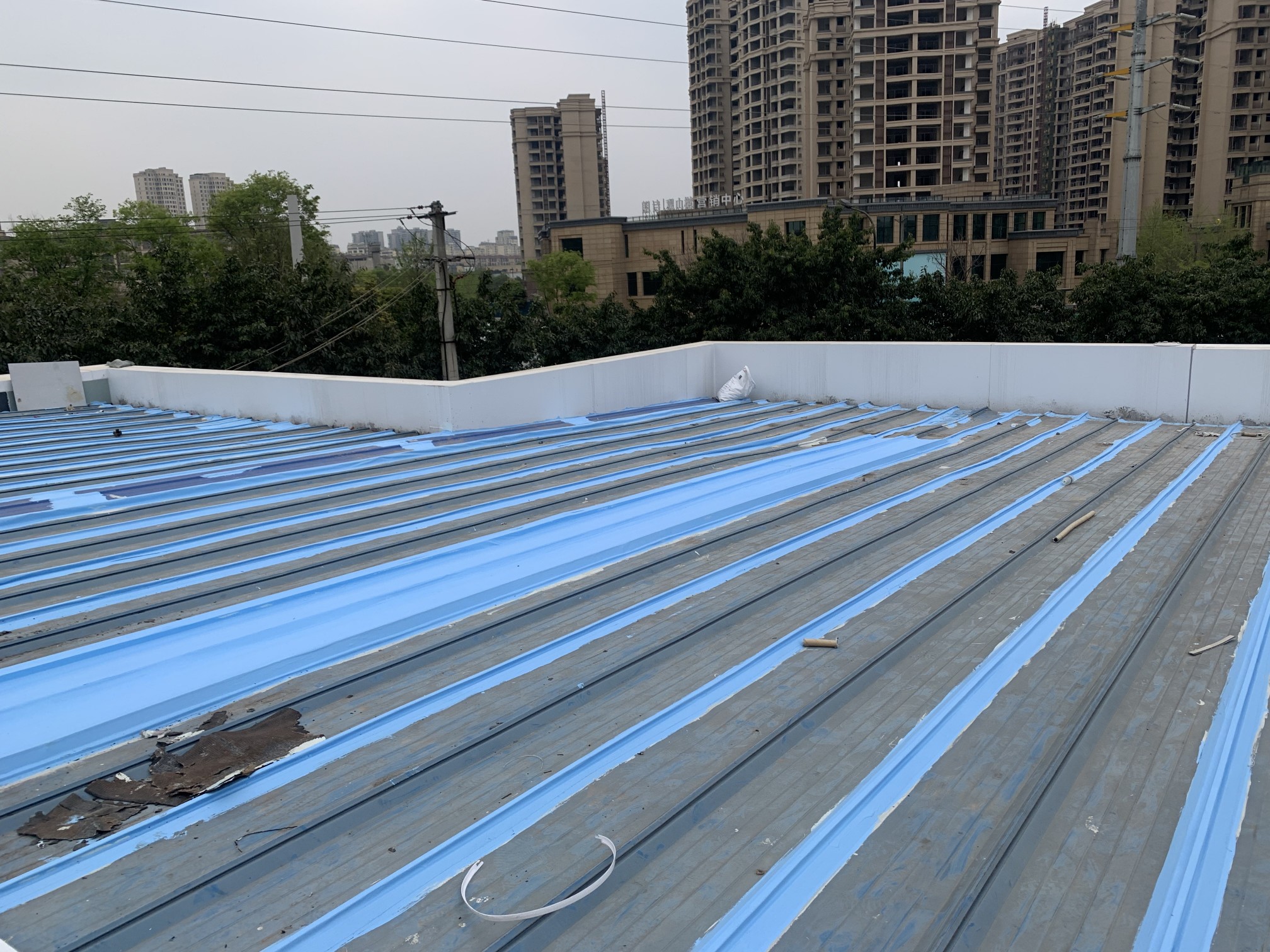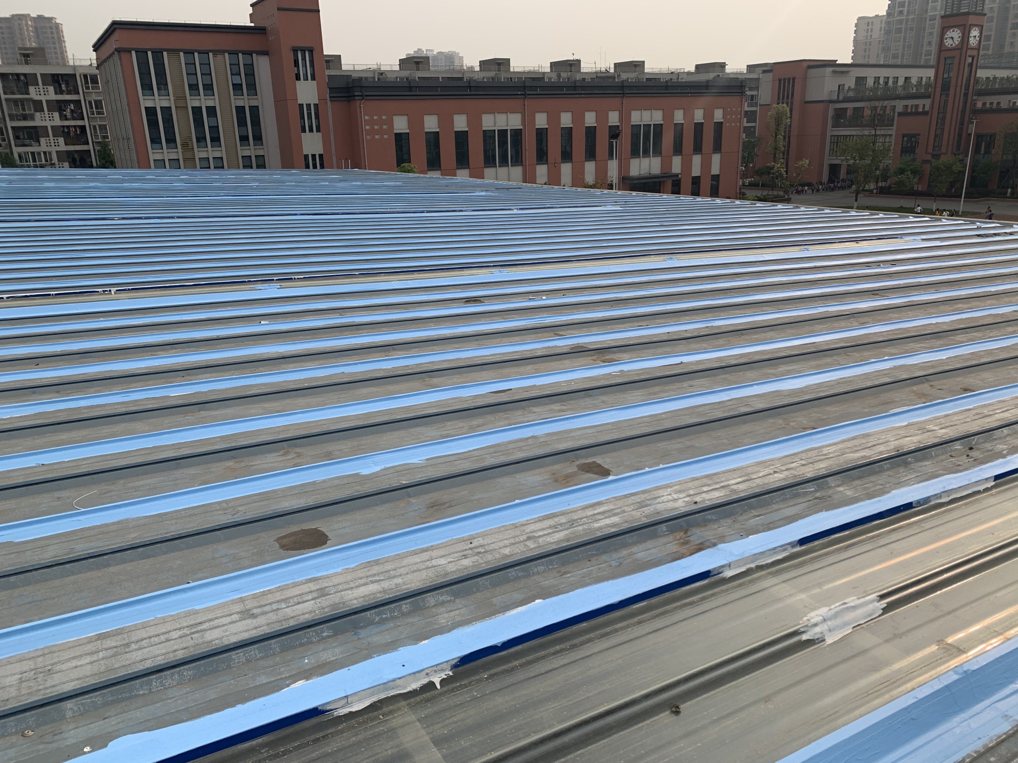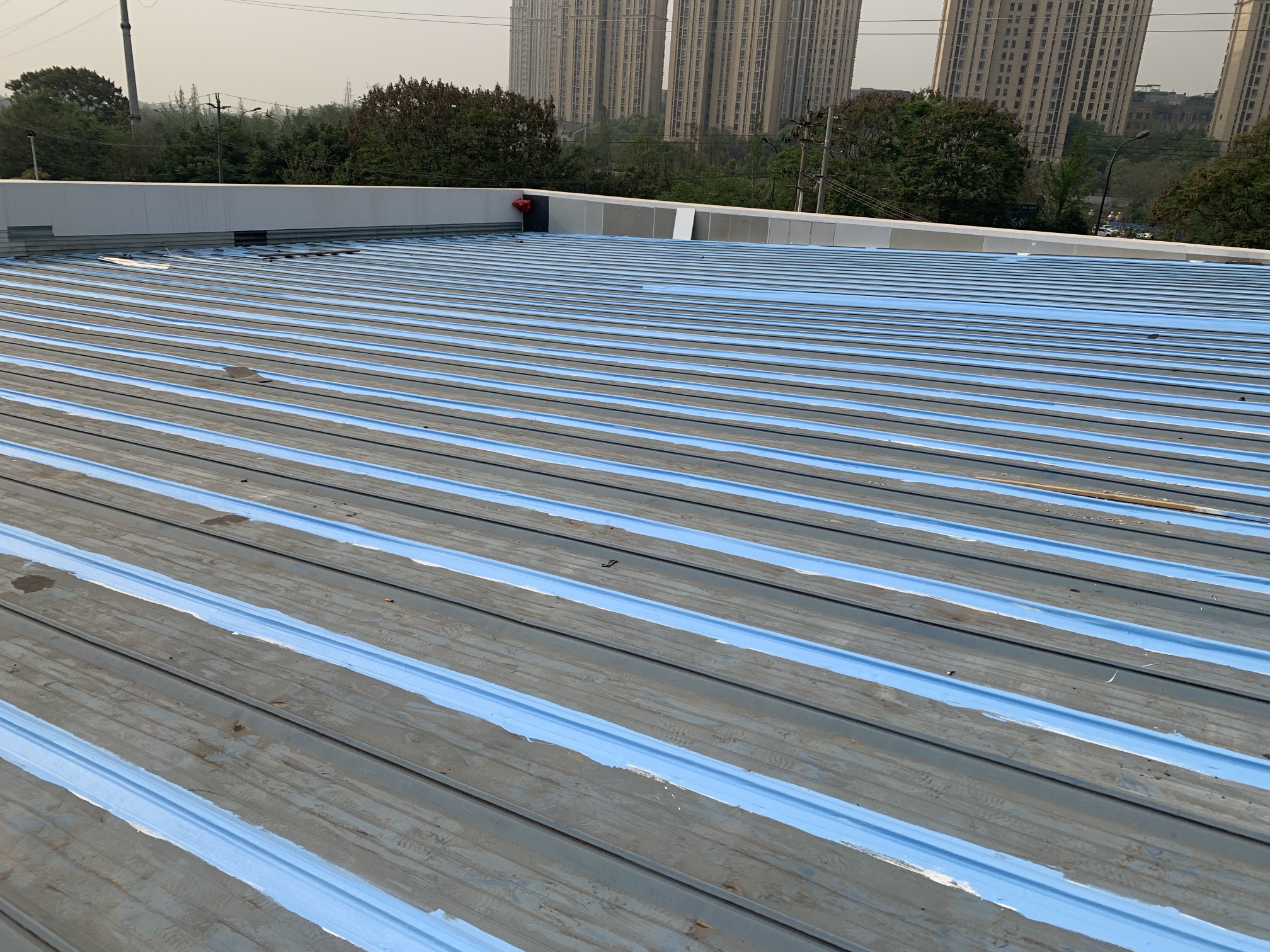 成都市新都區(qū)下石橋路啟陽五龍山園區(qū)鋼結(jié)構(gòu)彩鋼頂屋面防水補(bǔ)漏由成都蜀禹建筑防水工程有限責(zé)任公司施工,采用的蜀禹SYR金屬屋面專用防水涂料配合專用縫織聚酯布進(jìn)行施工處理的,施工處理后具有防水防腐等多重功能。