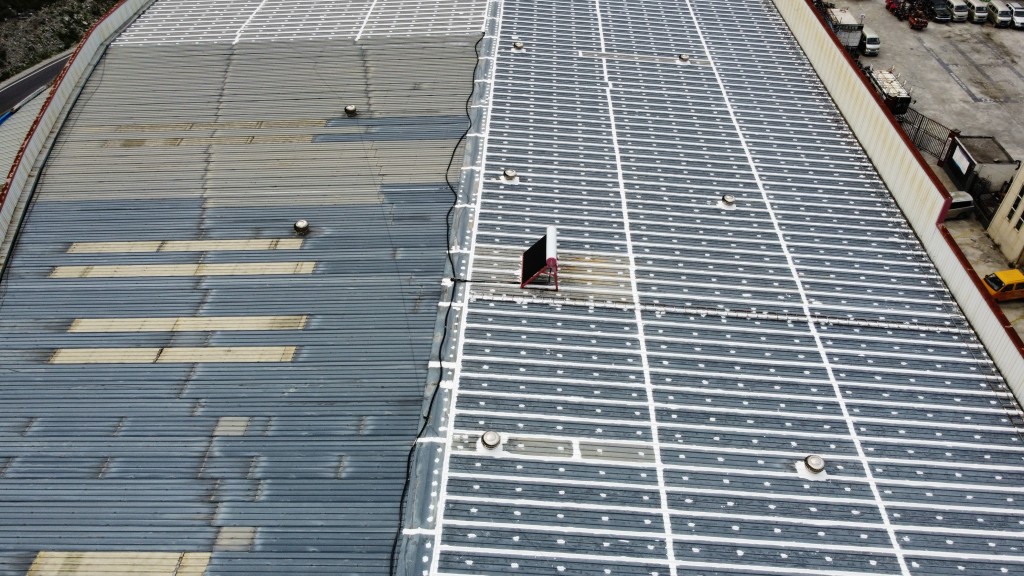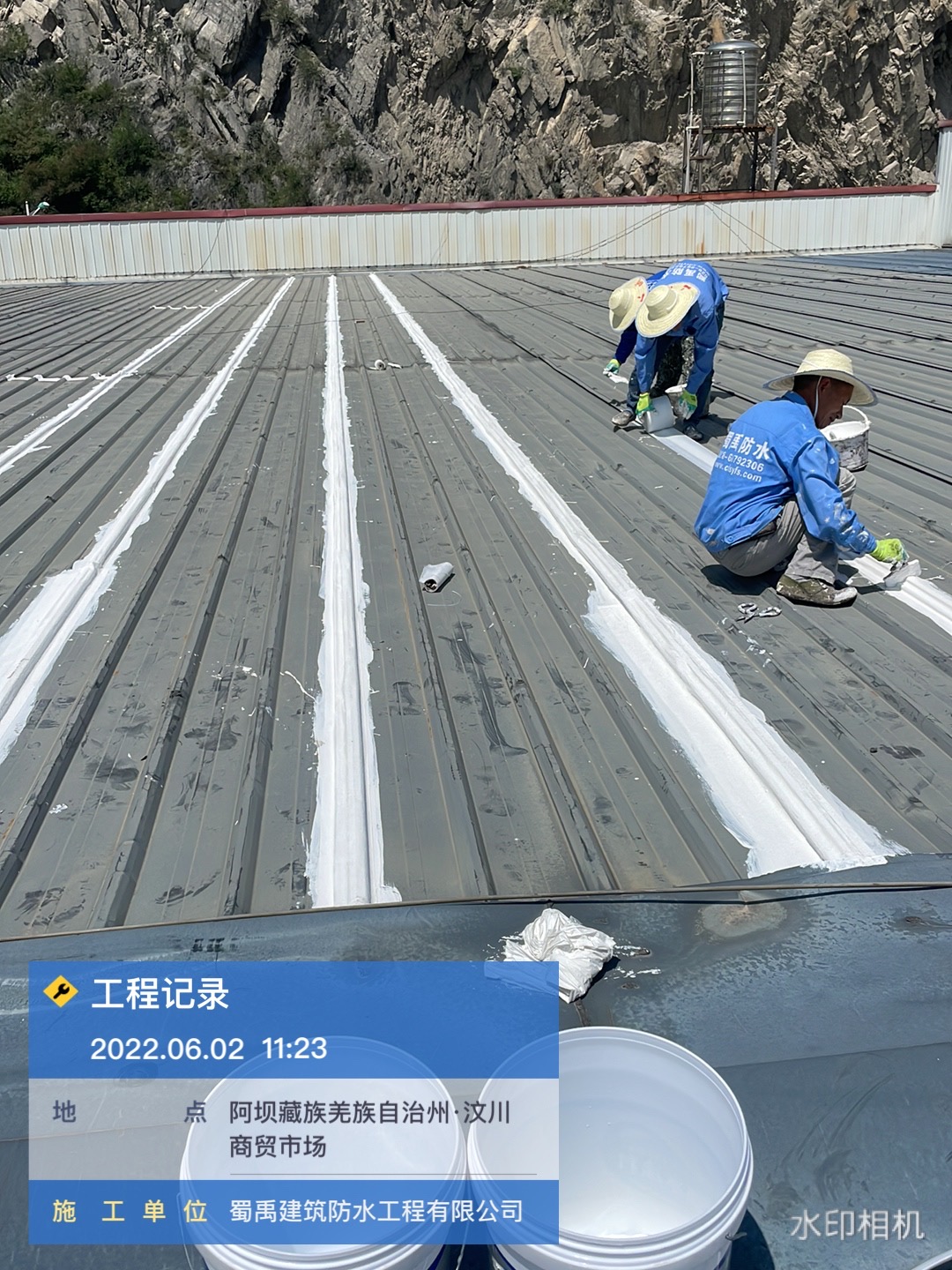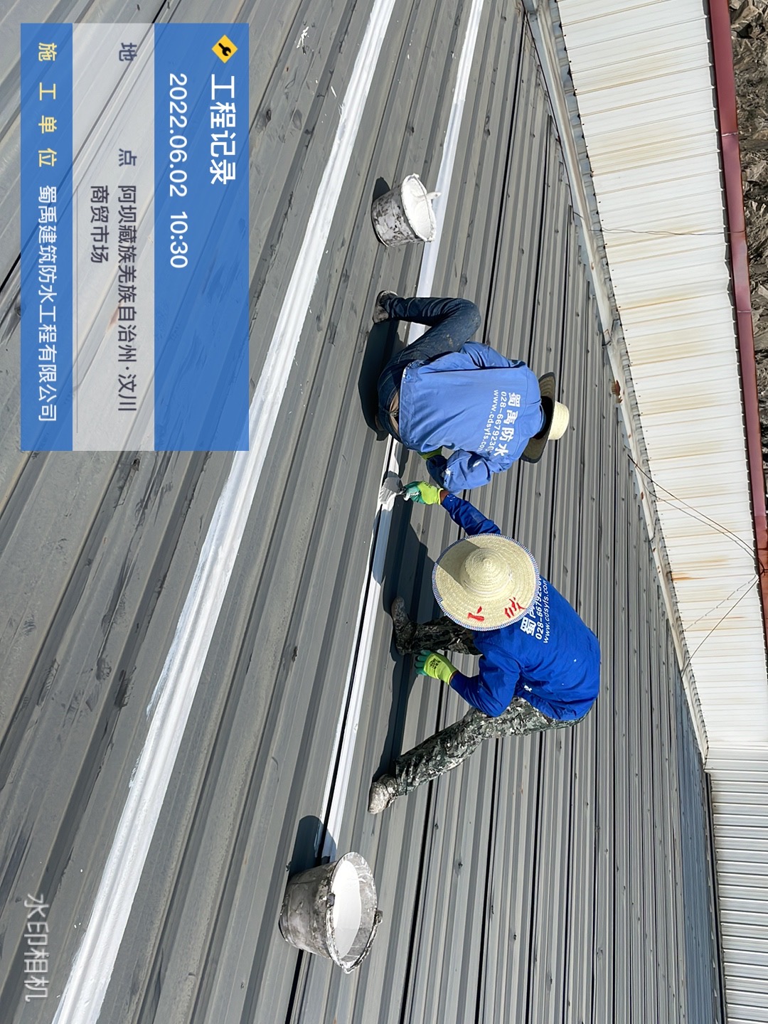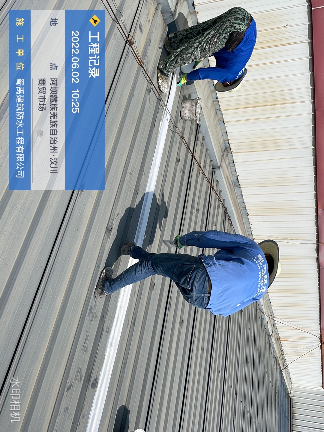 我公司承接的位于四川省阿壩藏族羌族自治州汶川縣威州鎮沙窩子阿壩州普蘭特二手車交易市場有限公司廠房彩鋼頂防水補漏工程,這個工程是鋼結構廠房,以前屋頂有多處漏雨的情況,由于漏水點位較多,業主方之前找公司在廠房屋頂又全部滿加蓋了一層彩鋼瓦,但是經過了一段時間下雨的時候還是多處漏雨的情況,實在沒辦法了,找到了我們,我們根據現場實際查勘的情況,我們推薦采用SYR金屬屋面防水系統解決這個彩鋼頂漏雨難題,彩鋼搭接縫及螺絲釘部位先涂刷SYR金屬屋面專用防水涂料然后鋪貼專用縫織聚酯布,再涂刷SYR金屬屋面專用防水涂料,待干后表面再涂刷SYR金屬屋面專用防水涂料。業主方經過考慮和考察之后決定采用我們的方案施工,事實證明我們施工之后下雨檢測效果很好,采用SYR金屬屋面防水系統施工的彩鋼頂下雨不漏雨了。