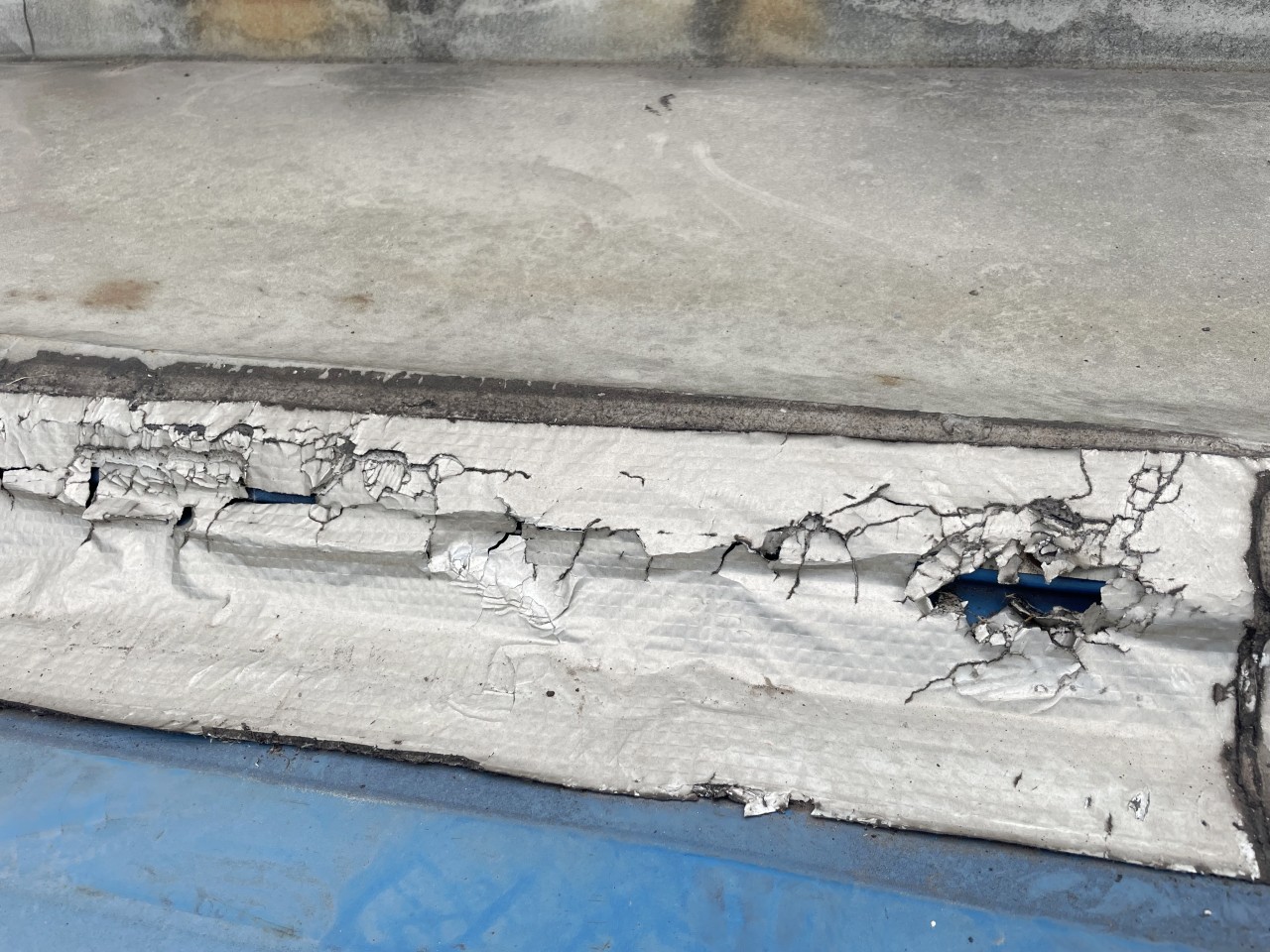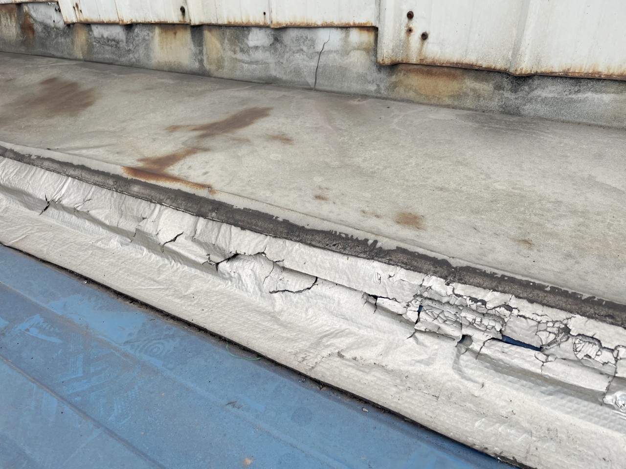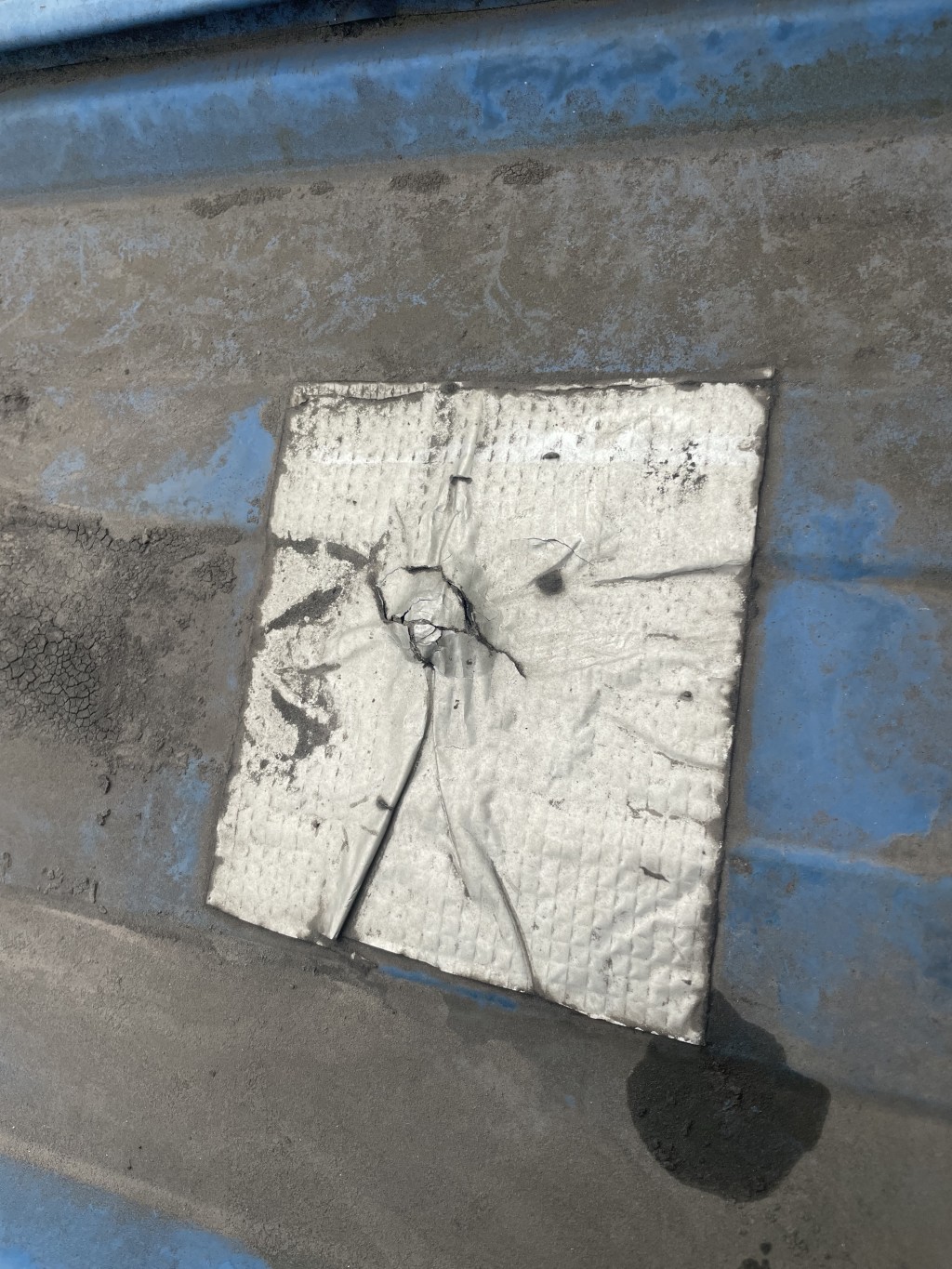 下面這照片中就是之前其他公司采用丁基膠帶修補的,丁基膠帶已經開裂了,沒有起作用了。