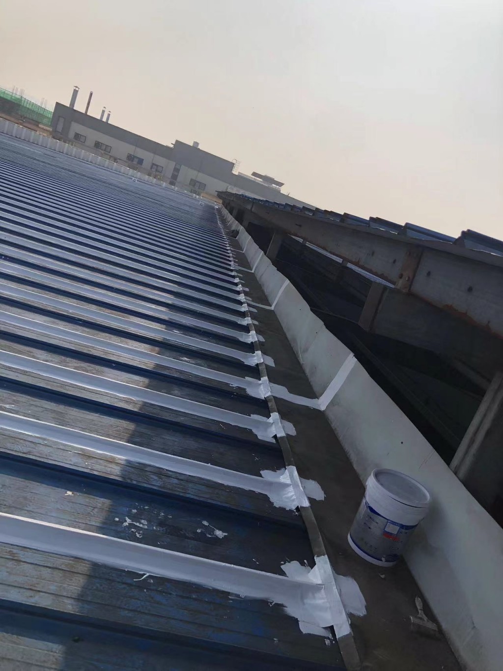 下面這些照片中就是我們公司現在施工的現場,彩鋼板中間有破損孔洞的部位也是采用一布三涂的方式進行防水密封處理了的,這樣處理了之后彩鋼頂形成了一個完整體,表面的水就不再漏到樓下室內了。處理了之后下雨觀測效果很好。