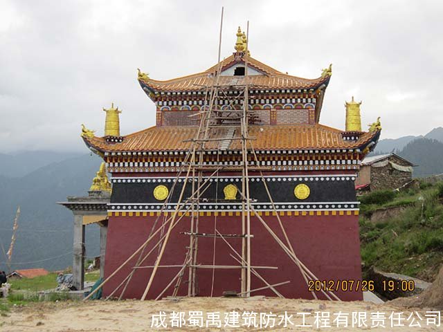 2012年西巴寺新建了蓮花生大殿,我們于2012年7月對蓮花生大殿的屋頂進(jìn)行防水工程施工處理,處理了之后效果很好,能夠耐住高原地帶的長時(shí)間積雪低溫環(huán)境,比之前其他的人做的防水的效果好,2016年4月的時(shí)候西巴寺修建大雄寶殿,由于之前我們在西巴寺做的屋頂防水工程效果好,所以再次讓我們做了屋頂防水工程,感謝西巴寺對我們的信任,我們也認(rèn)真的對大雄寶殿的屋頂平臺防水工程進(jìn)行了施工。